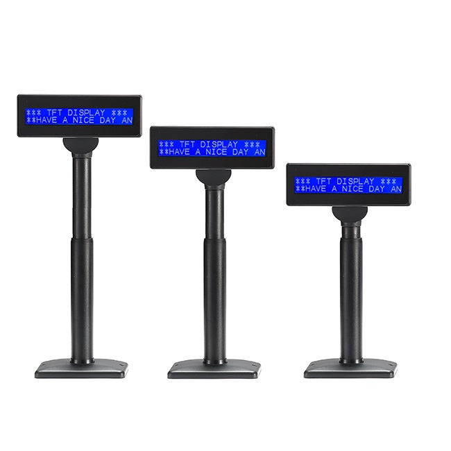 Дисплей покупателя PD220C-VI предназначен для вывода суммы к оплате, сдачи и сервисных сообщений на рабочем месте кассира. 2,2-дюймовый ЖК-экран отображает 40 символов (20 символов × 2 строки), поэтому на нём удобно показывать наименования товаров, приветствия, рекламные тексты и промо-сообщения. Синезелёная подсветка и высокая яркость 1200 кд/м² обеспечивают отличную читаемость информации — дисплей заметен как в торговом зале с ярким освещением, так и при уличной торговле.
